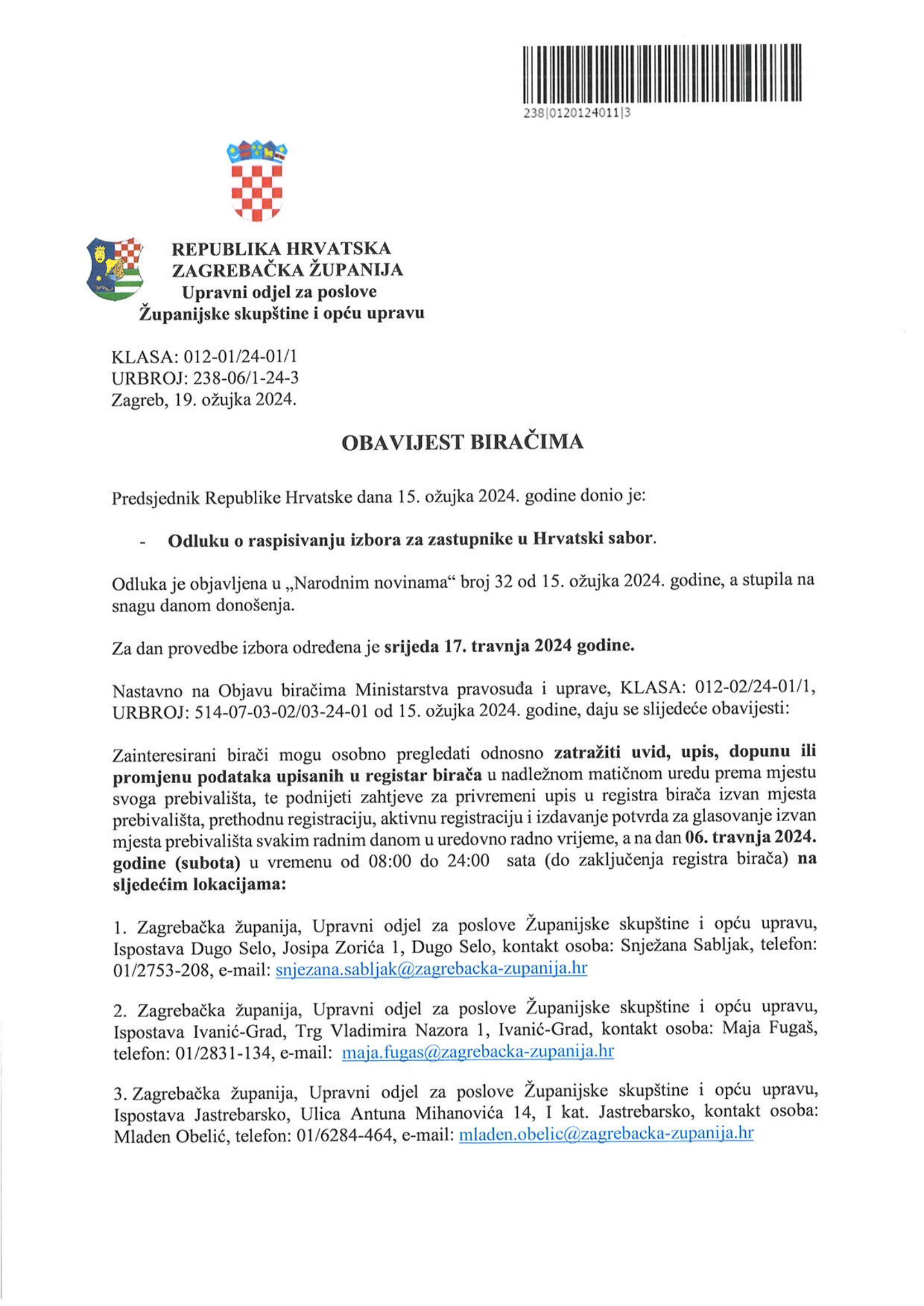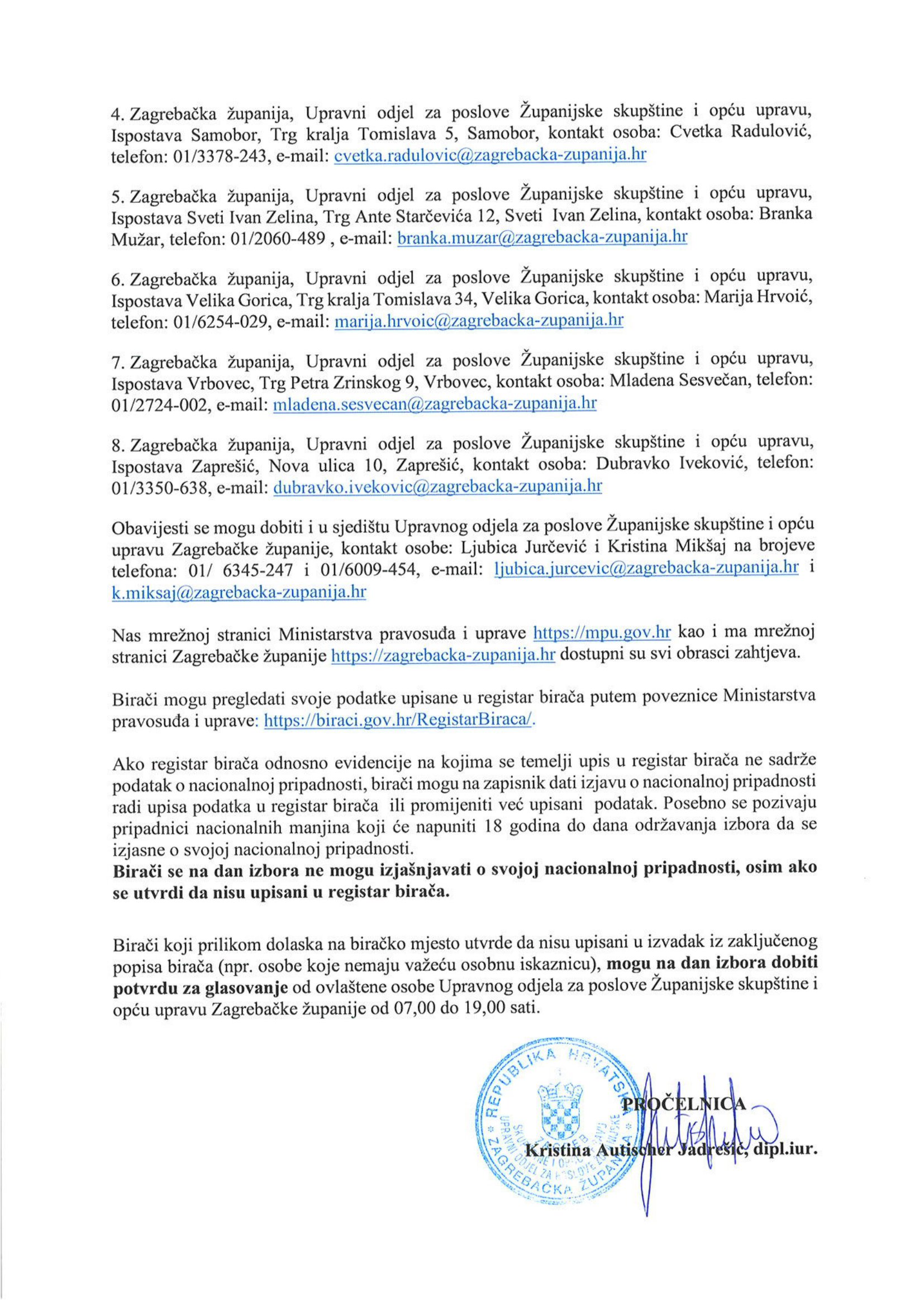 OBAVIJEST BIRAČIMA – Uvid, upis, dopuna ili promjena podataka upisanih u registar birača - Općina Pušća