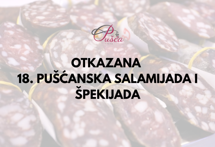 Obavještavamo vas da otkazujemo 18. Pušćansku salamijadu i špekijadu sukladno Naredbi o mjerama kontrole za suzbijanje Afričke svinjske kuge u Republici Hrvatskoj koje se izravno dotiču organizacija manifestacija na kojima se izlaže i/ili konzumira meso svinja i proizvodi od mesa svinja.